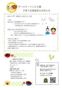 2月「ひよこクラブ」「園庭&室内開放」のお知らせ 4日・18日・25日