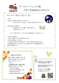 10月「ひよこクラブ」「園庭&室内開放」のお知らせ 1日・8日・15日・29日
